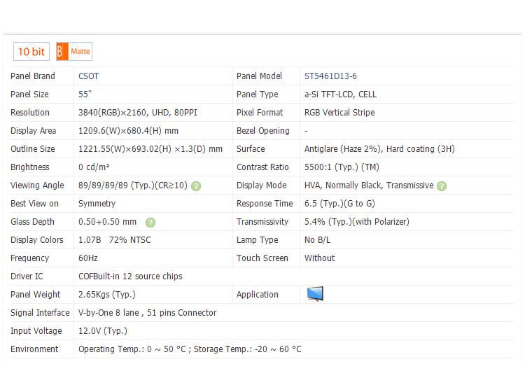 | Model name | ST5461D13-6 | Display Size | 55 inches |