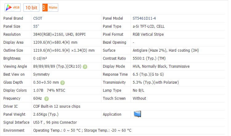 | Model name | ST5461D11-4 | Display Size | 55 inches |