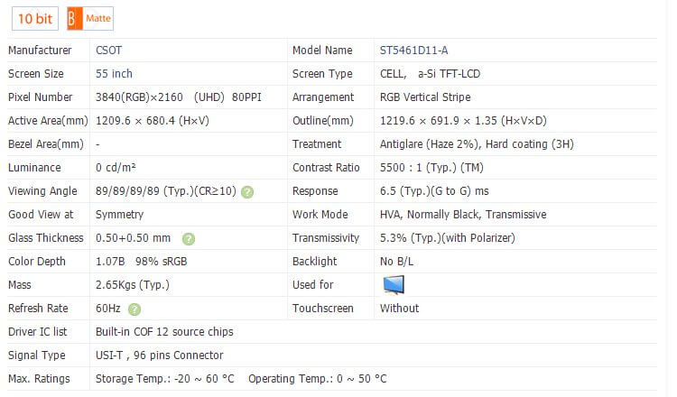 | Brand Name | CSOT | Panel Type | OPEN CELL |