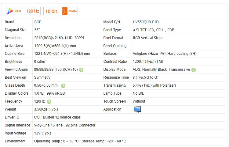 | Model name | HV550QUB-E1D | Display Size | 55 inches |