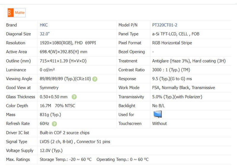 | Model name | PT320CT01-2 | Display Size | 32 inches |