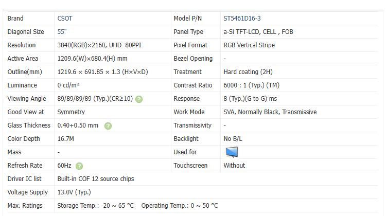 | Model name | ST5461D16-3/LSF550FN16/17/32 | Display Size | 55 inches |