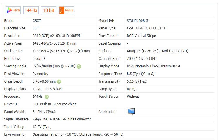 | Pixel Format | 3840(RGB)*2160 (UHD) 68PPI | D-IC Detail | COF Built-in 12 source chips |