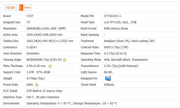 | Model name | ST7461D03-1 | Display Size | 75 inches |