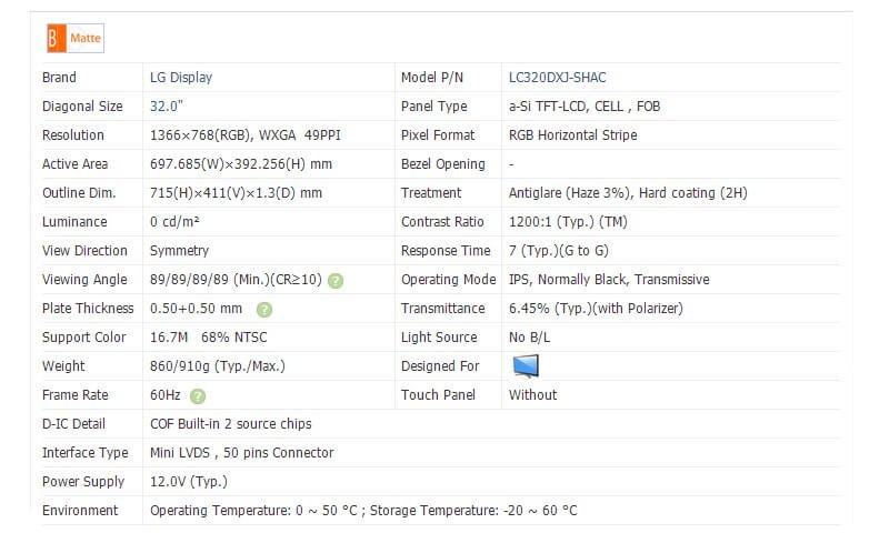 | Model name | LC320DXJ-SHAC | Display Size | 32 inches |
