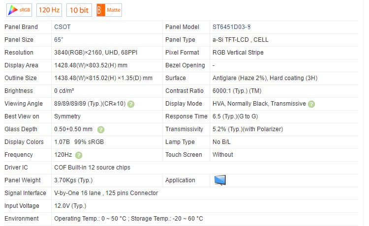 Pixel Format 3840(RGB)*2160 (UHD) 68PPI D-IC Detail COF Built-in 12 source chips